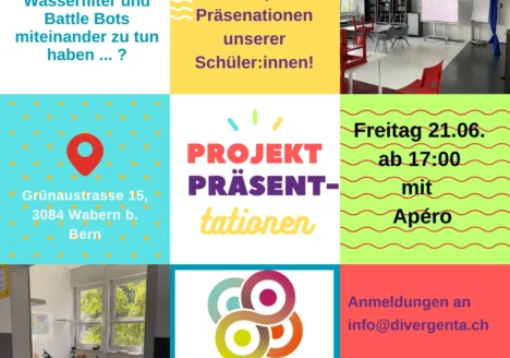 📢🌟 Du willst wissen, was Ameisen, Orang-Utans, Wasserfilter und Battle Bots miteinander zu tun haben? 🌟📢 Dann komm am Freitag ab 17:00 Uhr an die divergenta Schule! 🚀 Wir Schüler:innen präsentieren unsere spannenden…